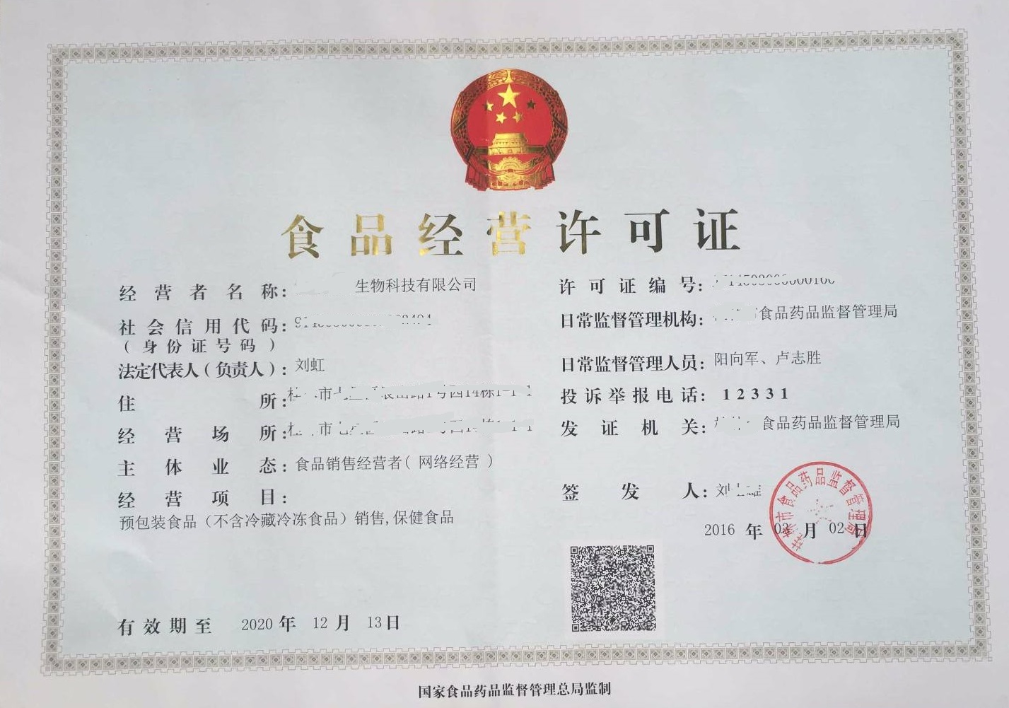 您如果是食品銷售企業(yè)或者經(jīng)銷商,需要辦理食品經(jīng)營許可證,原來稱之為食品流通許可證,您因?yàn)闆]有廠房,也無法辦理食品生產(chǎn)許可證。
